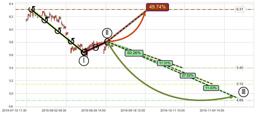 ➣ 循环浪继续向下【平均值】位置(10-28:15, 5.15),匹配聚类样本比例54.75%, 可能性概率27.52%