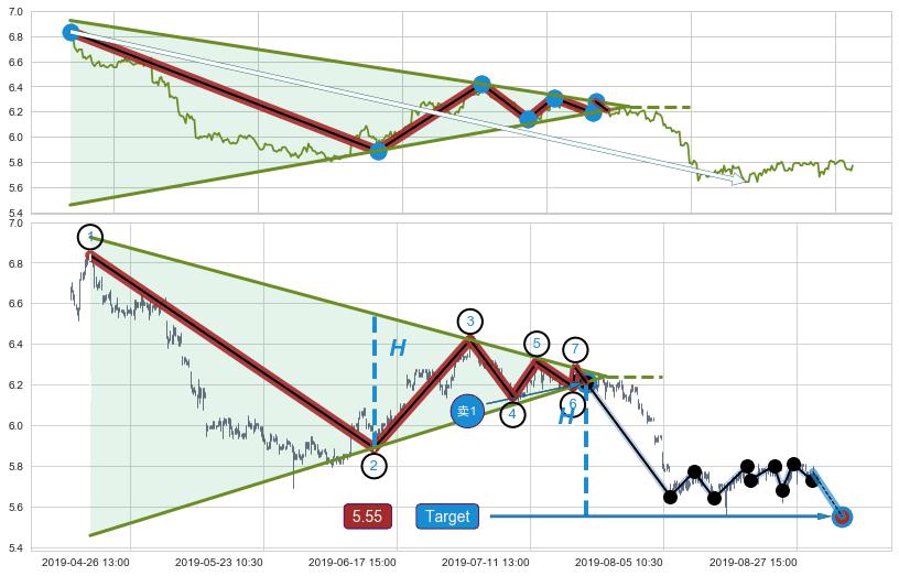 ➣ 最小中继整理跌幅→𝐇: 0.7970 (𝐇旗杆的长度:旗杆起点→顶点)