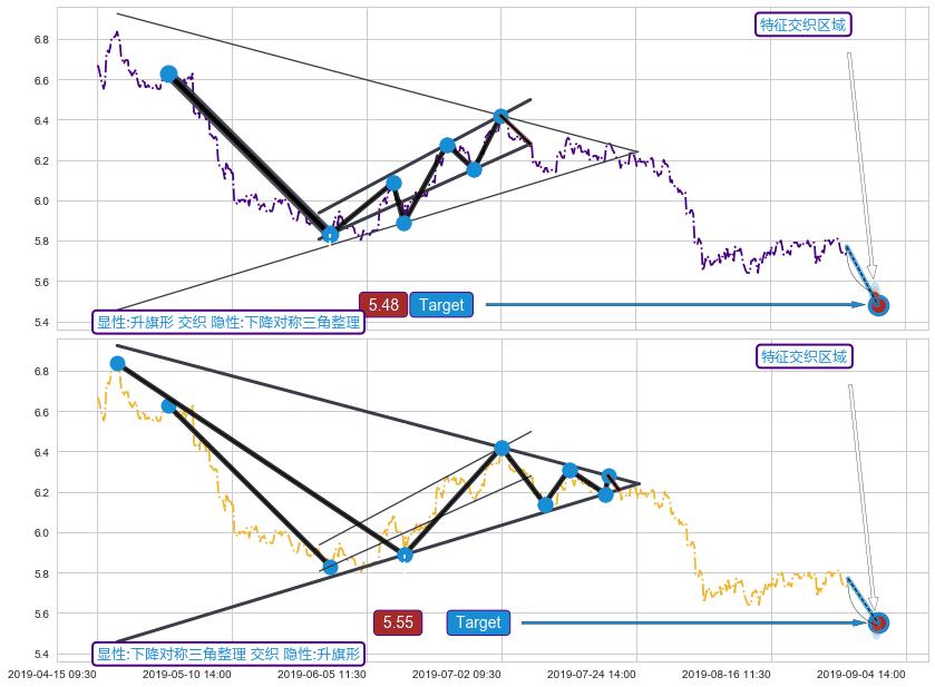 ➢ 下降对称三角整理:猜想预期下跌目标target即将达成,随后猜想强支撑来临,预期反弹上涨(均值回复)