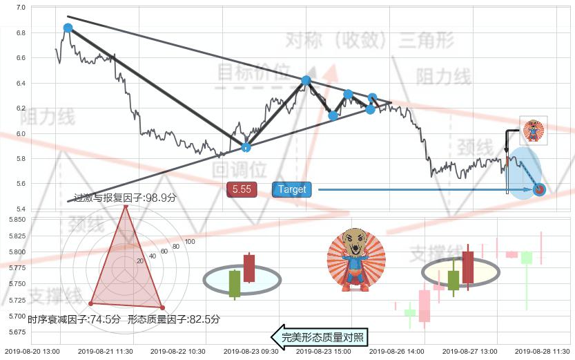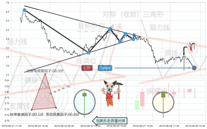 ➢ 锤头线(锤子线) 🔜 下降对称三角整理临近target支撑拐点上涨 综合量化分数:59.02 【偏多】