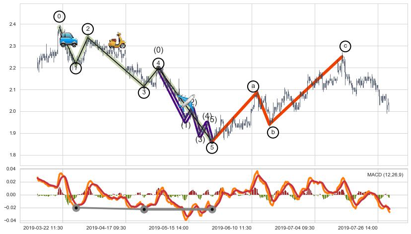 ➣ 波浪理论:猜想达到c点后小回调终止反转上涨 → 上涨 → 【拐点】临近 → 阶段均值回复结束后继续大周期趋势跟踪