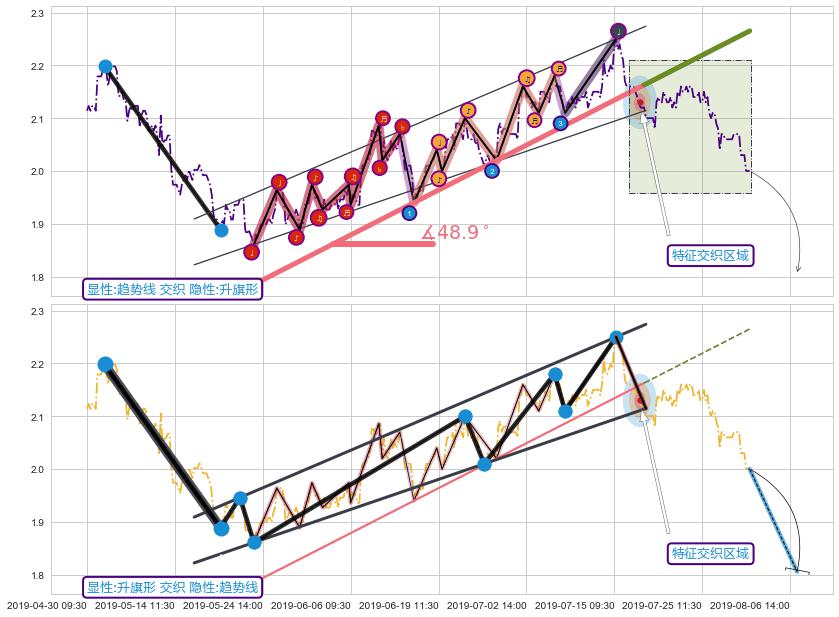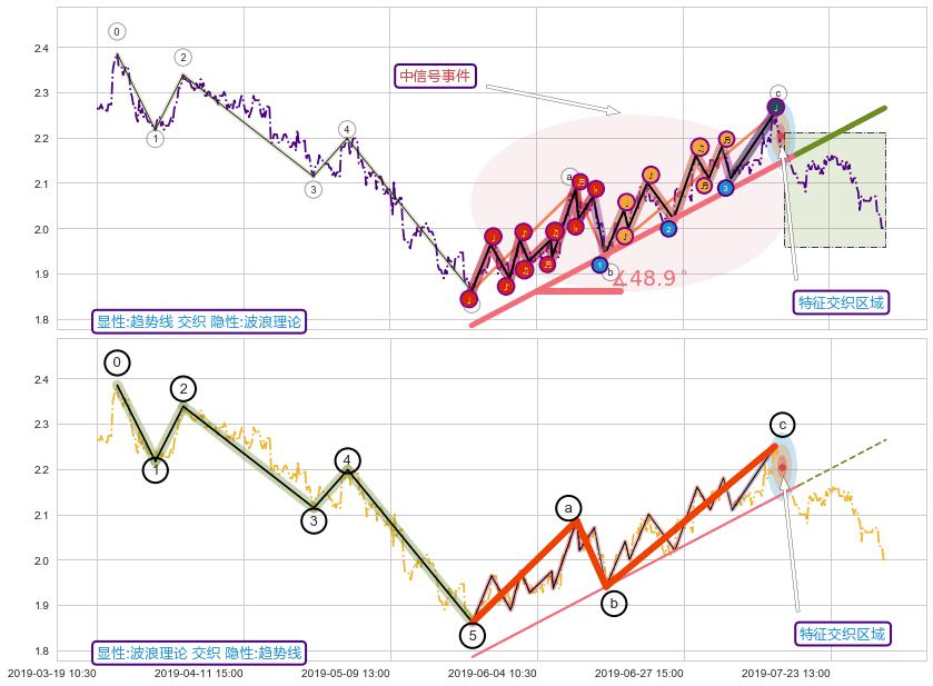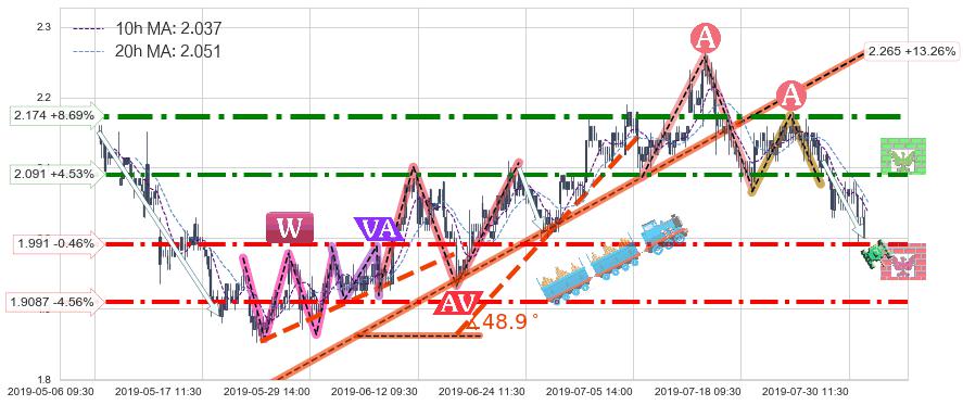 ➣ 2019-05-23 15:00-2019-07-17 15:00上升趋势存在反转[风险],其原上升趋势的支撑位(2.265)已破位[强阻力信号],原上升趋势角度: 48.9˚