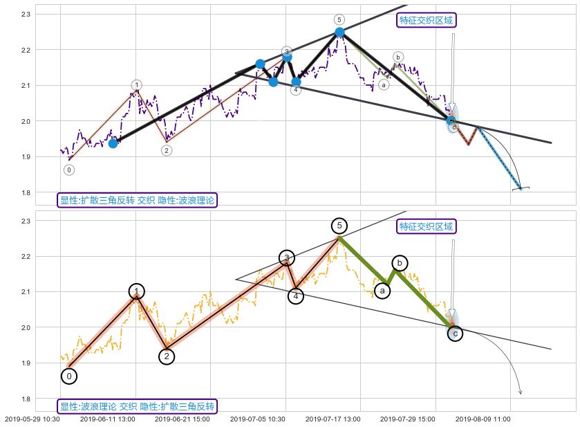 ➢ 扩散三角反转与波浪理论信号事件周期长度级别相同,同周期信号事件