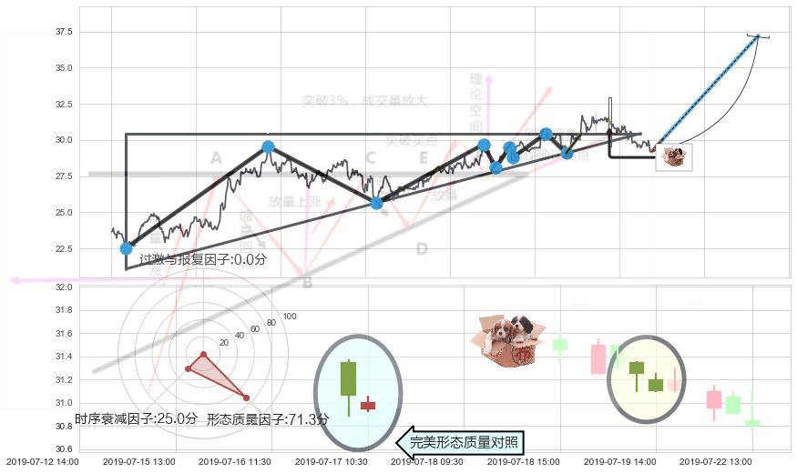 ➢ 🕰 价格走势在2019-07-23 09:30:00至2019-07-23 10:30:00期间形成旭日东升,残存影响值:5.89