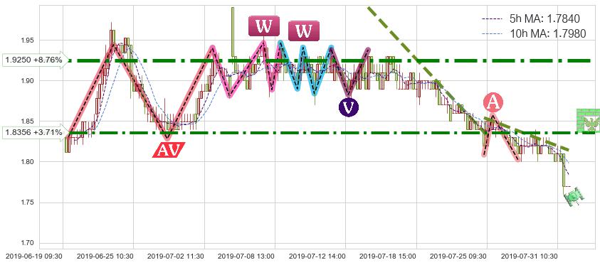 ♘ 阻力价格位1.9250,可信任强度97.66%,距离最后交易2019-07-31 15:00形成的收盘价格1.7700相差 +8.76%