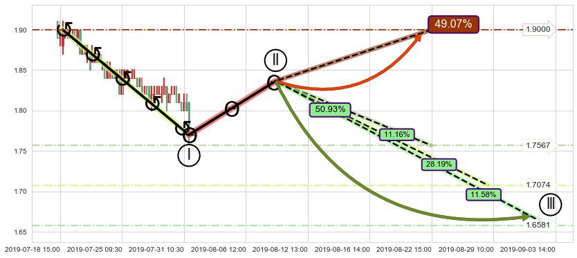 ➣ 循环浪继续向下【平均值】位置(08-28:14, 1.7074),匹配聚类样本比例55.36%, 可能性概率28.19%