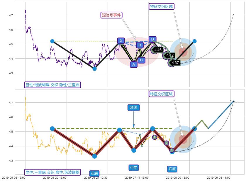 ➢ 谐波蝴蝶属【短级别信号事件】三重底属【长级别信号事件】长短周期组合信号事件, 短长事件长度比22.16%