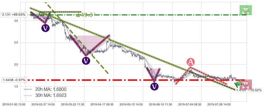➣ 2019-02-04 11:30-2019-06-24 13:00下跌趋势存在反转上涨[机会],其原下跌趋势的阻力位(1.4107)已被突破[强支撑信号],原下跌趋势角度: 49.3˚