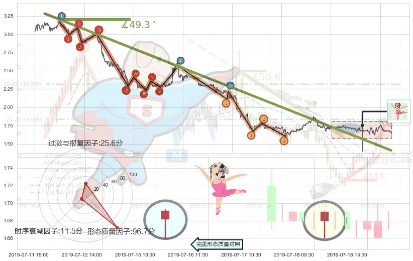 从2019-02-04 11:30至2019-04-12 11:30,共包含268个小时,阶段股价下跌-18.49%,阶段股价变动位移路程比: 1 : 10,下跌趋势角度: 73.2