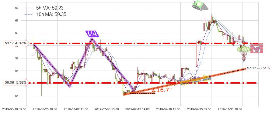 ♘ 支撑价格位56.06,可信任强度93.65%,距离最后交易2019-07-31 15:00形成的收盘价格59.25相差 -5.38%