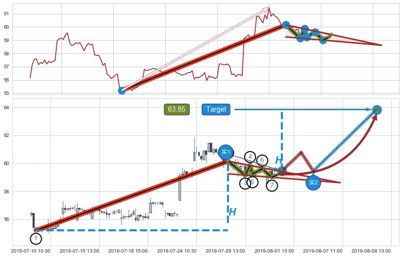 ➣ 【仅预测突破】最后价格:59.25与预测突破价格:59.45→【空间临近】后续最小【整理】第一目标价格→(08-09:13: 63.85 )