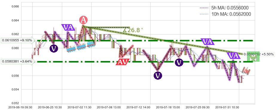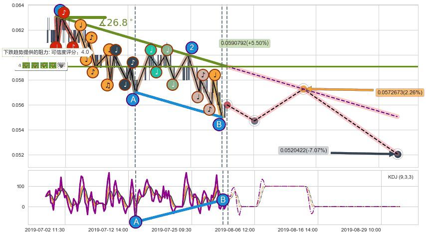 ➢ 预测:2019-08-06 13:00,【后劲十足】稳定目前下跌趋势的前提下,预测价格:0.0547080