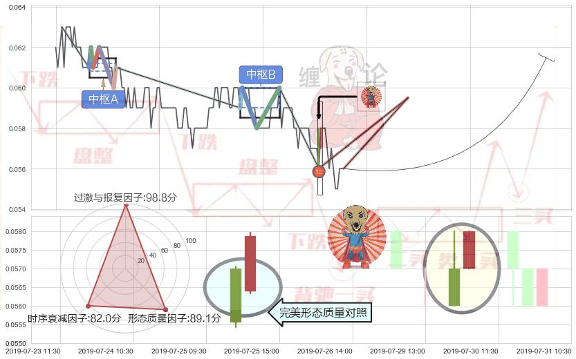 ➣ 【中枢B】:07-19:13-07-24:14,中枢由4笔构成,共20交易小时, ZG=0.0600000, ZD=0.0590000