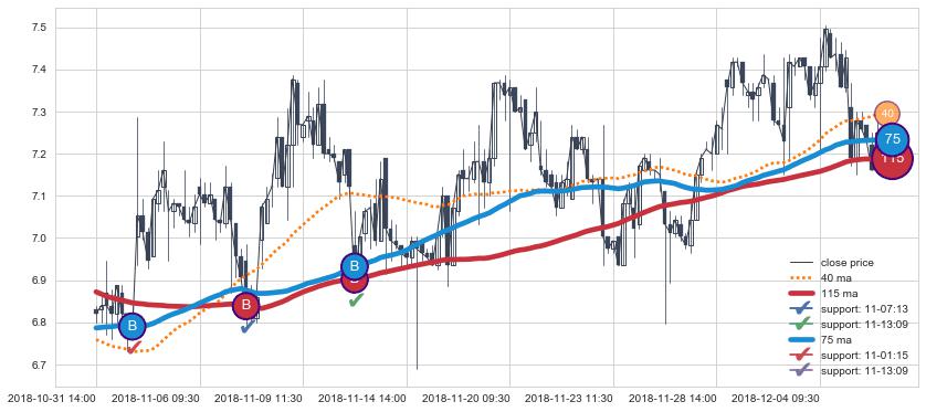 ➢ 最优均线组合共正确确认支撑阻力信号23处,正确确认率 76.67%