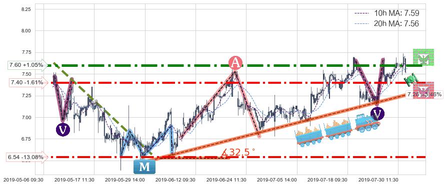 ♘ 阻力价格位7.60,可信任强度92.19%,距离最后交易2019-07-31 15:00形成的收盘价格7.52相差 +1.05%