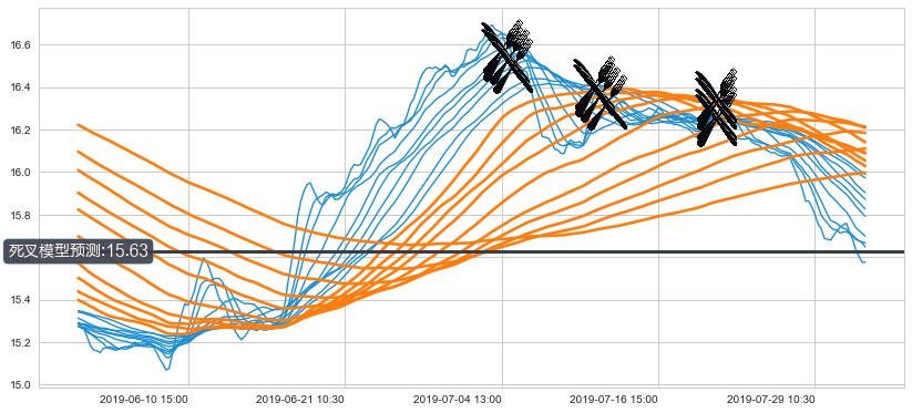 📉 多条均线基于【死叉历史模型】预测最低波谷价格的平均值: 15.63
