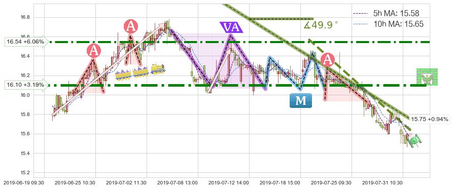 ♘ 阻力价格位16.10,可信任强度90.36%,距离最后交易2019-07-31 15:00形成的收盘价格15.60相差 +3.19%