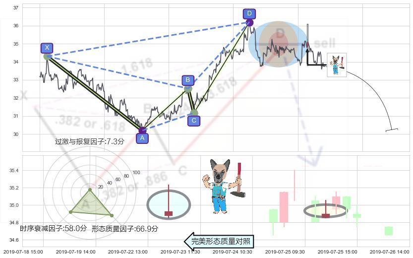 ➢ 🕰 价格走势在2019-07-25 11:30:00至2019-07-25 11:30:00期间形成看跌(高位倒锤头)流星线,残存影响值:-3.41