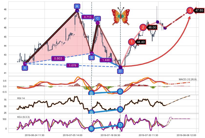 ➣ 已完成【蝴蝶】形态起点X: 06-18:09, 终点D: 07-18:09, 共127交易小时