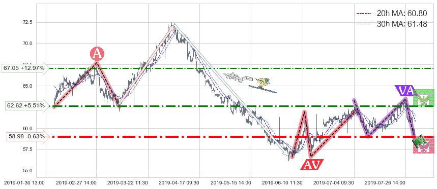 ♘ 阻力价格位62.62,可信任强度66.92%,距离最后交易2019-07-31 15:00形成的收盘价格59.35相差 +5.51%