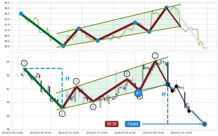 ♘ 阻力价格位62.03,可信任强度64.27%,距离最后交易2019-07-31 15:00形成的收盘价格59.35相差 +4.51%