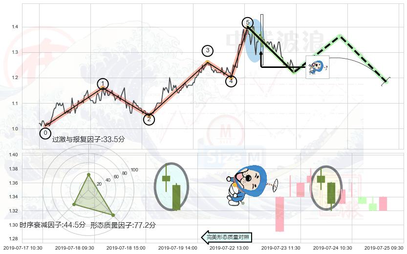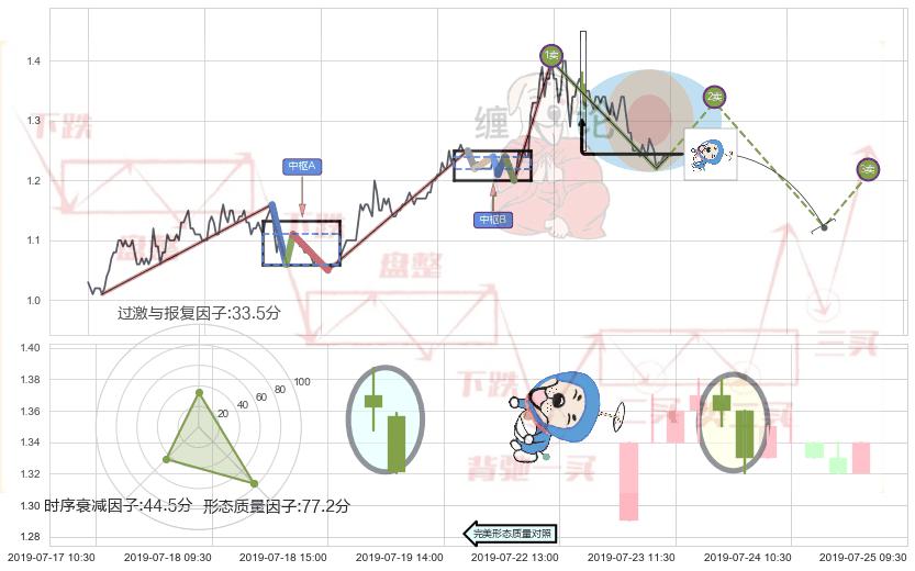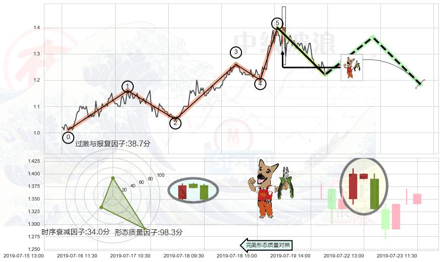 从2019-07-23 14:00至2019-07-31 15:00,共包含38个小时,阶段股价下跌-8.93%,阶段股价变动位移路程比: 1 : 4