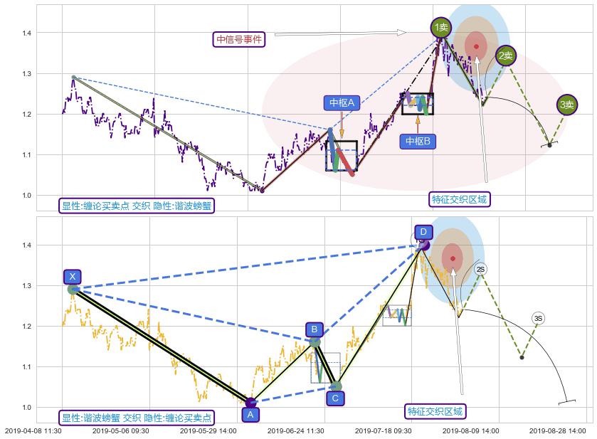➣ 缠论买卖点:猜想2卖持续蓄力下跌至3卖 → 下跌 → 风险信号 → 小趋势跟踪