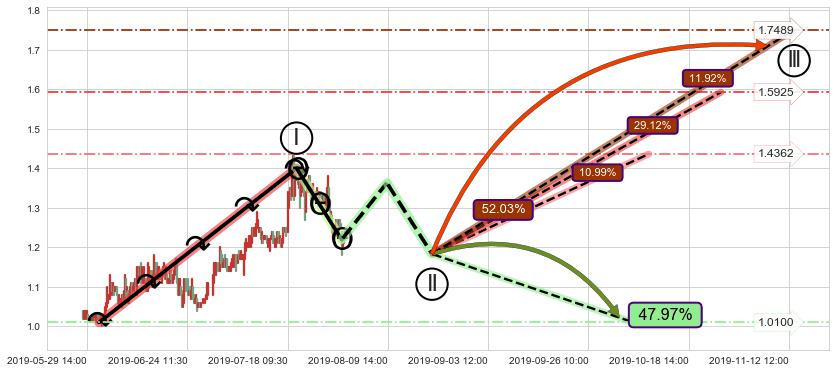 ➣ 循环浪继续向上【平均值】位置(10-28:10, 1.5925),匹配聚类样本比例55.97%, 可能性概率29.12%