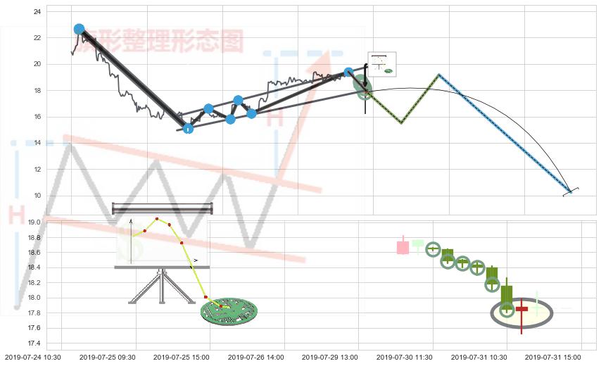 从2019-07-16 10:30至2019-07-31 15:00,共包含71个小时,阶段股价下跌-7.89%,阶段股价变动位移路程比: 1 : 4