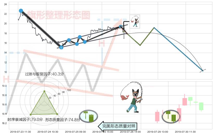 ➢ 吊颈线(上吊线) 🔜 升旗形临近支撑猜想转换阻力下跌 综合量化分数:38.35 【偏空】