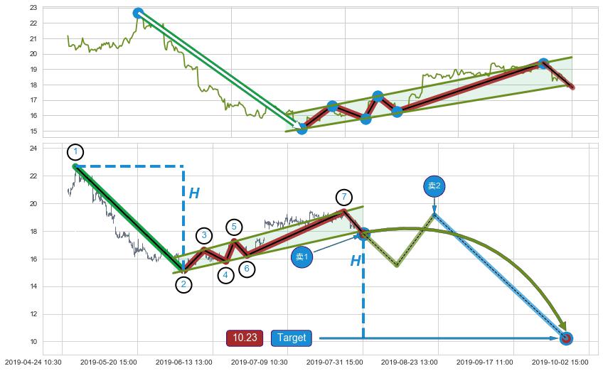 ➣ 最小中继整理跌幅→𝐇: 7.55 (𝐇旗杆的长度:旗杆起点→顶点)