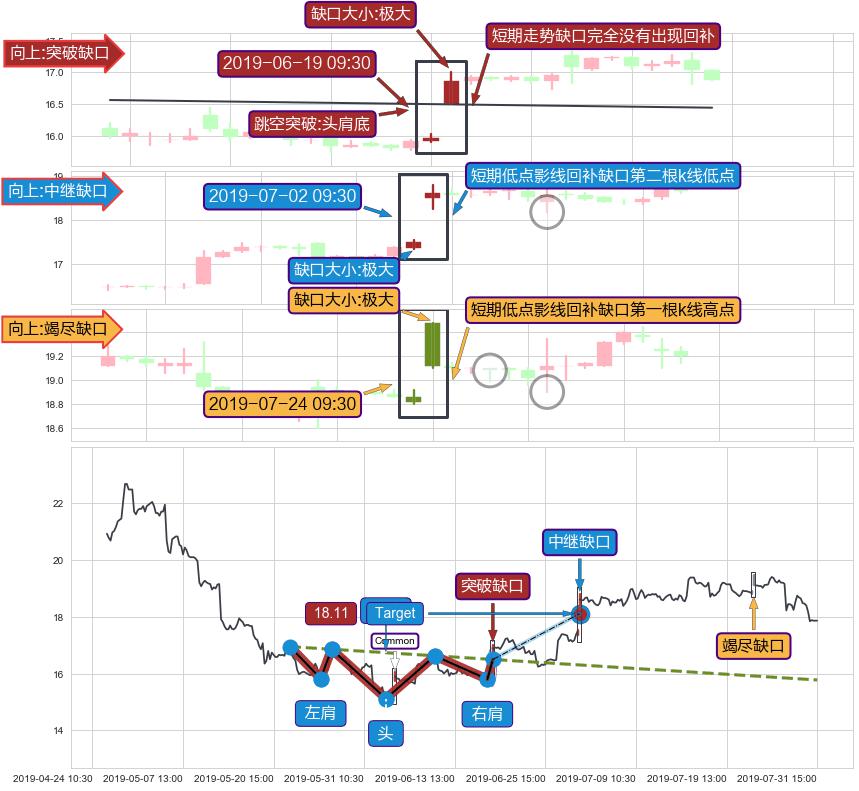 ➢ (Common ⥥ 头肩底) 🔜 竭尽缺口 🔜 中继缺口 🔜 突破缺口 综合量化分数:46.03 【偏空】