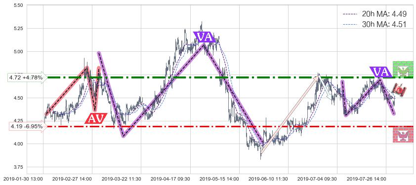 ♘ 阻力价格位4.72,可信任强度78.54%,距离最后交易2019-07-31 15:00形成的收盘价格4.50相差 +4.78%