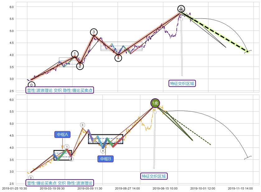 ➣ 缠论买卖点:上升缠中枢AB形成后猜想拐点1卖已到达,猜想后续持续下跌(均值回复)