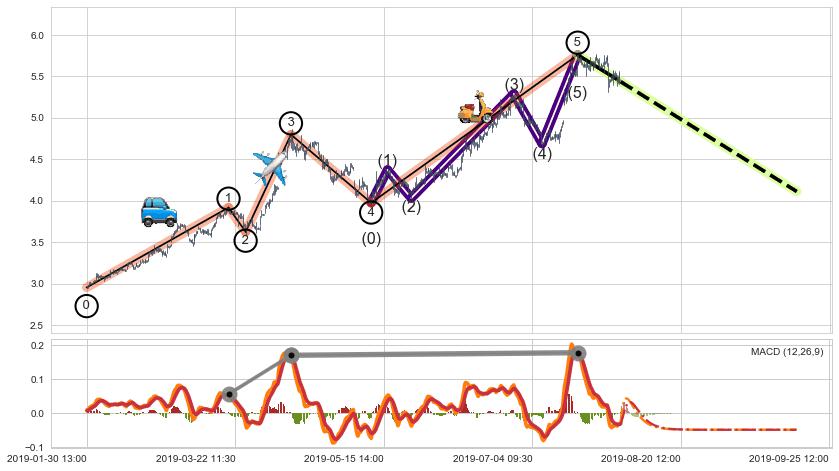 ➣ 波浪理论:猜想止涨 → 下跌 →【拐点】浪5已完成 → 大趋势均值回复