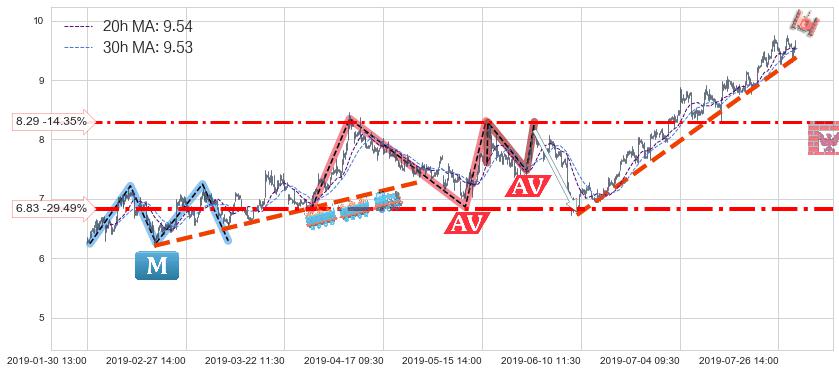 ♘ 支撑价格位8.29,可信任强度66.20%,距离最后交易2019-07-31 15:00形成的收盘价格9.68相差 -14.35%