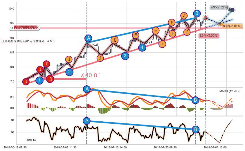 ➢ 预测:2019-08-05 11:00,【小幅回撤】稳定目前上涨趋势的前提下,预测价格:9.48