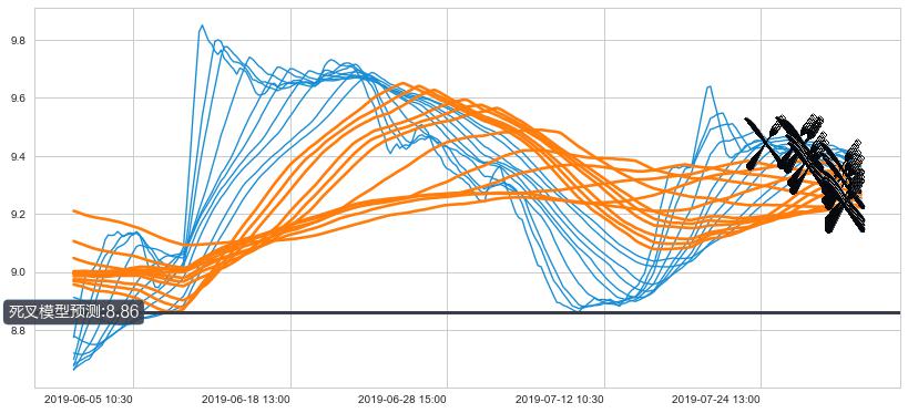 ➣ 80小时均线于(07-30 15:00: 9.30)形成【死叉】基于【死叉历史模型】预测死叉后最低波谷价格: 8.88, 死叉后最低价格9.11,尚未达到预测最低波谷价格, 预期继续下跌