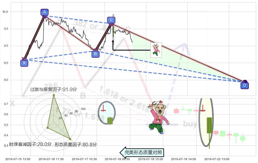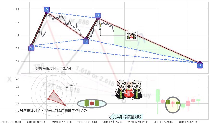 ➢ 🕰 价格走势在2019-07-22 11:30:00至2019-07-22 14:00:00期间形成两黑夹一红,残存影响值:-1.67