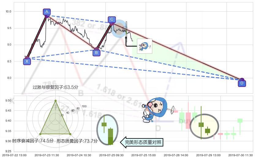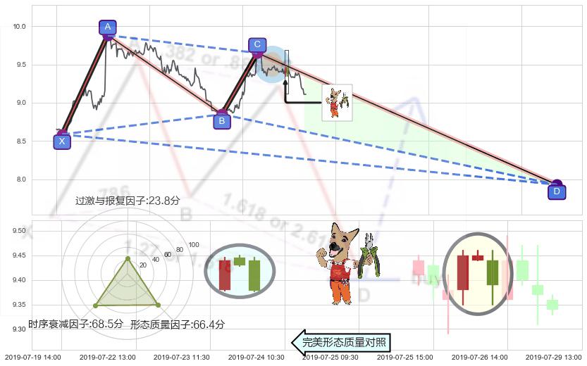 ➢ 射击之星形态 🔜 谐波蝴蝶c拐点下跌阻力 综合量化分数:38.49 【偏空】