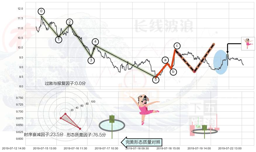 ➢ 🕰 价格走势在2019-07-30 09:30:00至2019-07-30 10:30:00期间形成底部尽头线(上山虎),残存影响值:5.11