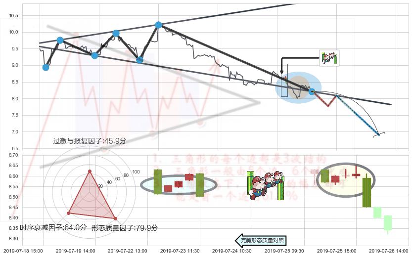 ➢ 🕰 价格走势在2019-07-25 11:30:00至2019-07-26 09:30:00期间形成下降三部曲(降势三鹤),残存影响值:-5.06