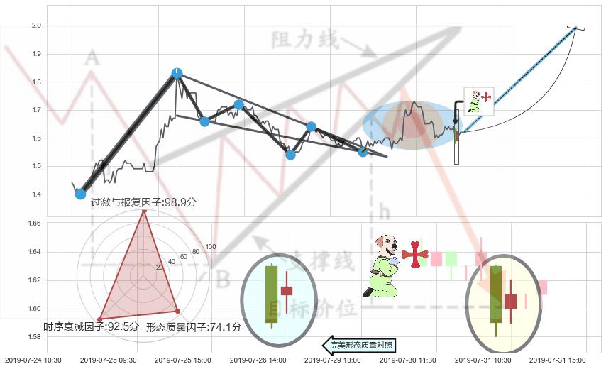 ➢ 🕰 价格走势在2019-07-31 00:00:00至2019-07-31 00:00:00期间形成锤头线(锤子线),残存影响值:7.76