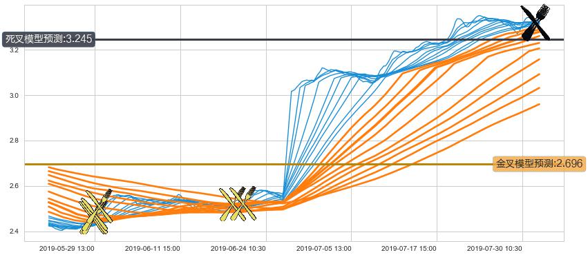 ➣ 80小时均线于(06-19 15:00: 2.522)形成【金叉】基于【金叉历史模型】预测金叉后最高波峰价格: 2.713, 金叉后最高价格3.360,已经上涨超出预测最高波峰价格, 预期回调