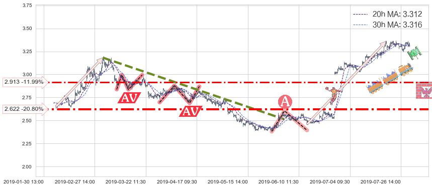 ♘ 支撑价格位2.913,可信任强度66.65%,距离最后交易2019-07-31 15:00形成的收盘价格3.310相差 -11.99%