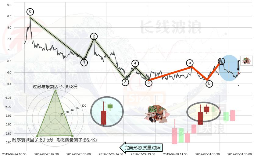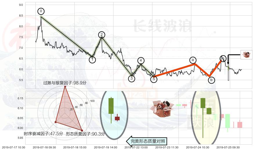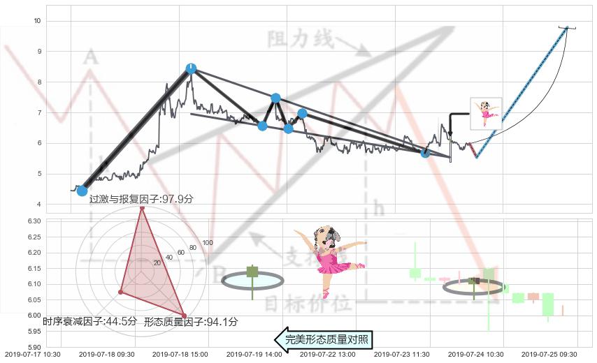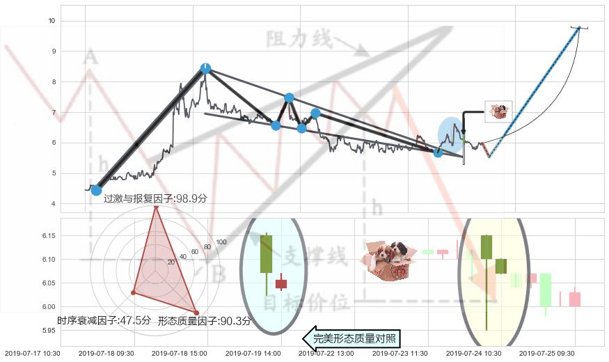 ➢ 🕰 价格走势在2019-07-24 09:30:00至2019-07-24 10:30:00期间形成底部尽头线(上山虎),残存影响值:6.27
