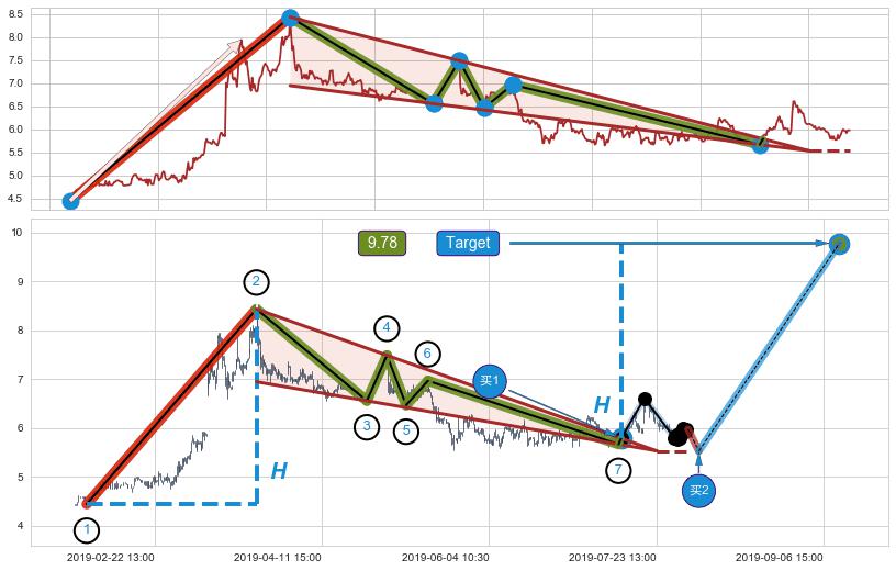 ➢ 最小中继整理涨幅→𝐇: 3.99 (𝐇楔型旗杆的长度:楔型起点→顶点)