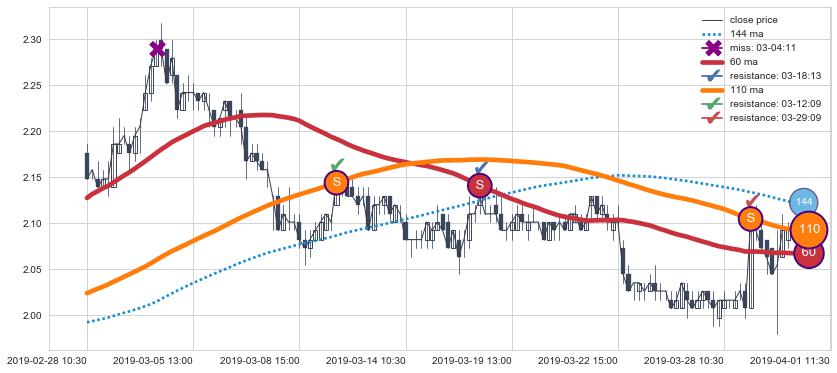 ➢ 最优均线组合共正确确认支撑阻力信号8处,正确确认率 44.44%