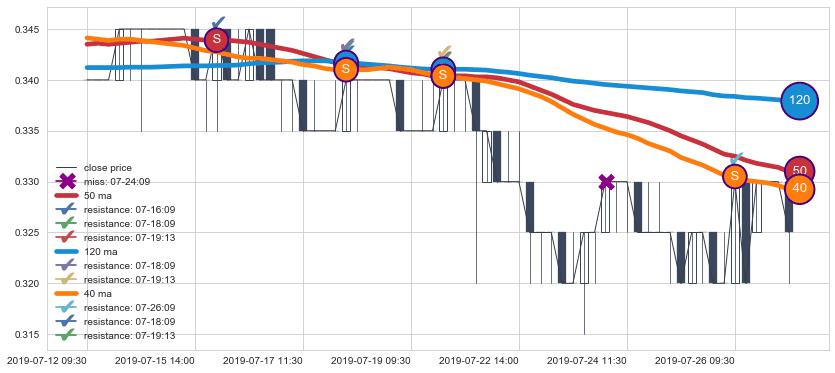 📝 多条均线形成死叉后走势最低价格达到: 0.32000