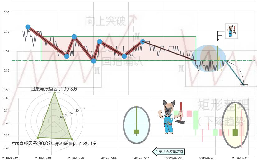 ♘ 在最后的下跌阶段2019-05-07 09:30至2019-07-23 15:00,存在 破位边缘的阻力位 ,阻力价格0.32949,可信任强度70.74%,其距离最后价格0.33000相差 -0.15%